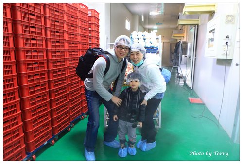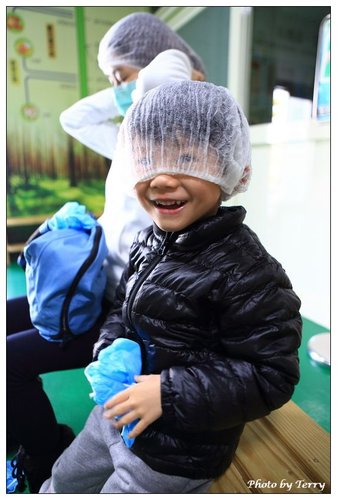 菇的生長環境要乾淨 無菌 所以要先戴頭套 腳套 等會兒還要經過大風吹 把身上的細菌吹光光