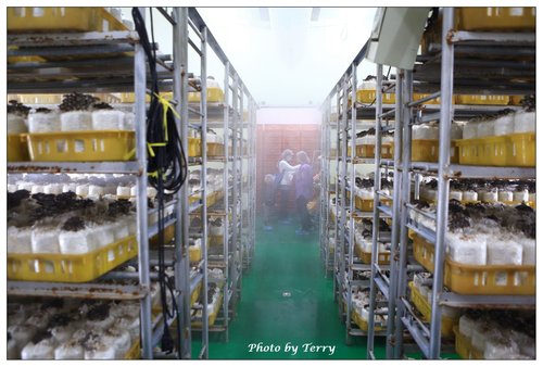 身上的細菌吹光光後 我們來看菇的生產庫房